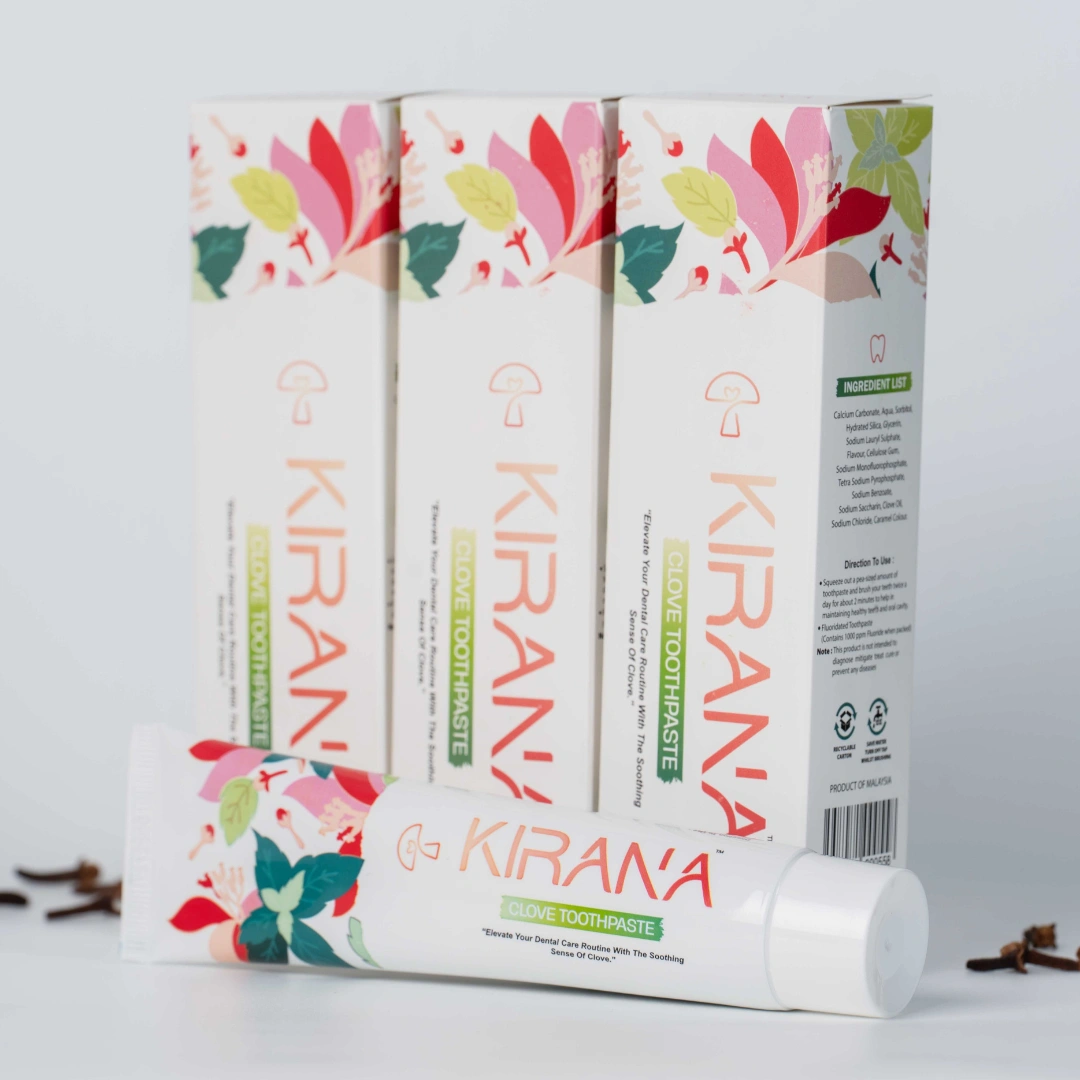 This single tube of Kirana Herbal Clove Toothpaste is more than enough to introduce your smile to the power of tradition. Infused with pure clove oil harvested from the rich groves of Kedah, this luxurious blend helps soothe gum sensitivity, combat bad breath, and restore oral balance — naturally.